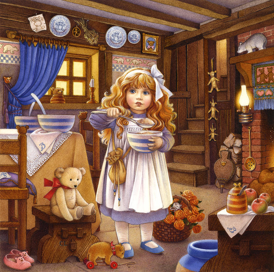 As the floorboards creaked and her curiosity led her inside, the smell of porridge reminded her stomach to growl. She tasted the first of the three bowls.